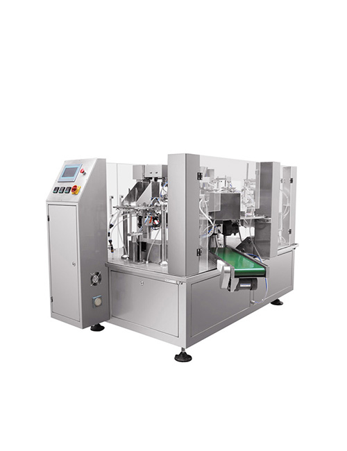각종 파우치, 스탠딩 파우치에 사용하는 로터리 파우치 포장기 입니다.